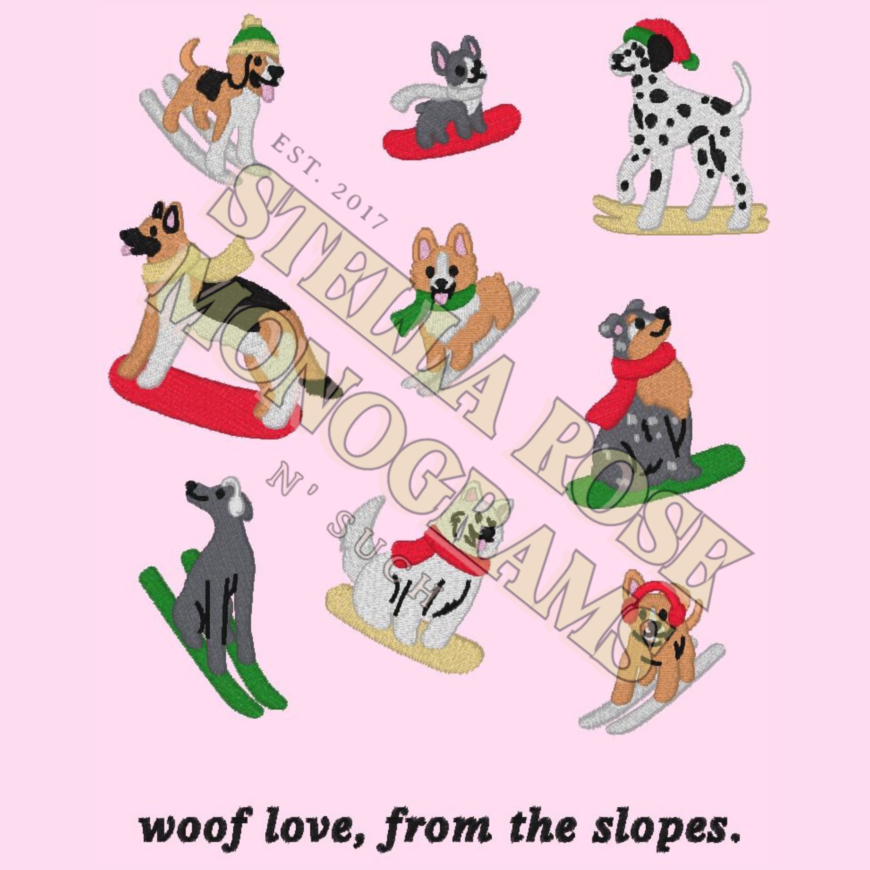 Woof Love From the Slopes Embroidery Design Digital Download @artistrybybellaco