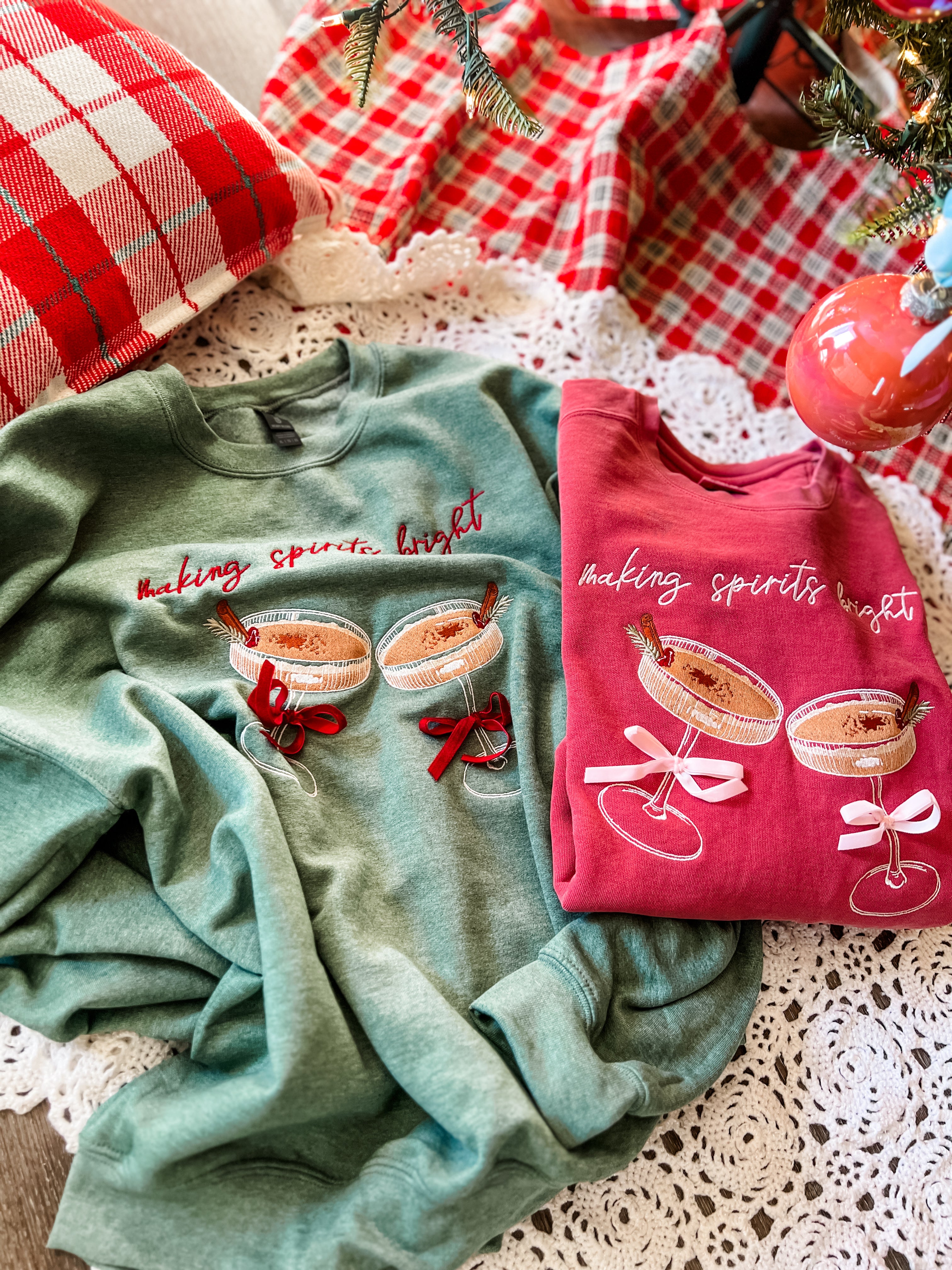 Making Spirits Bright Embroidered Pullovers 🥂Limited🥂