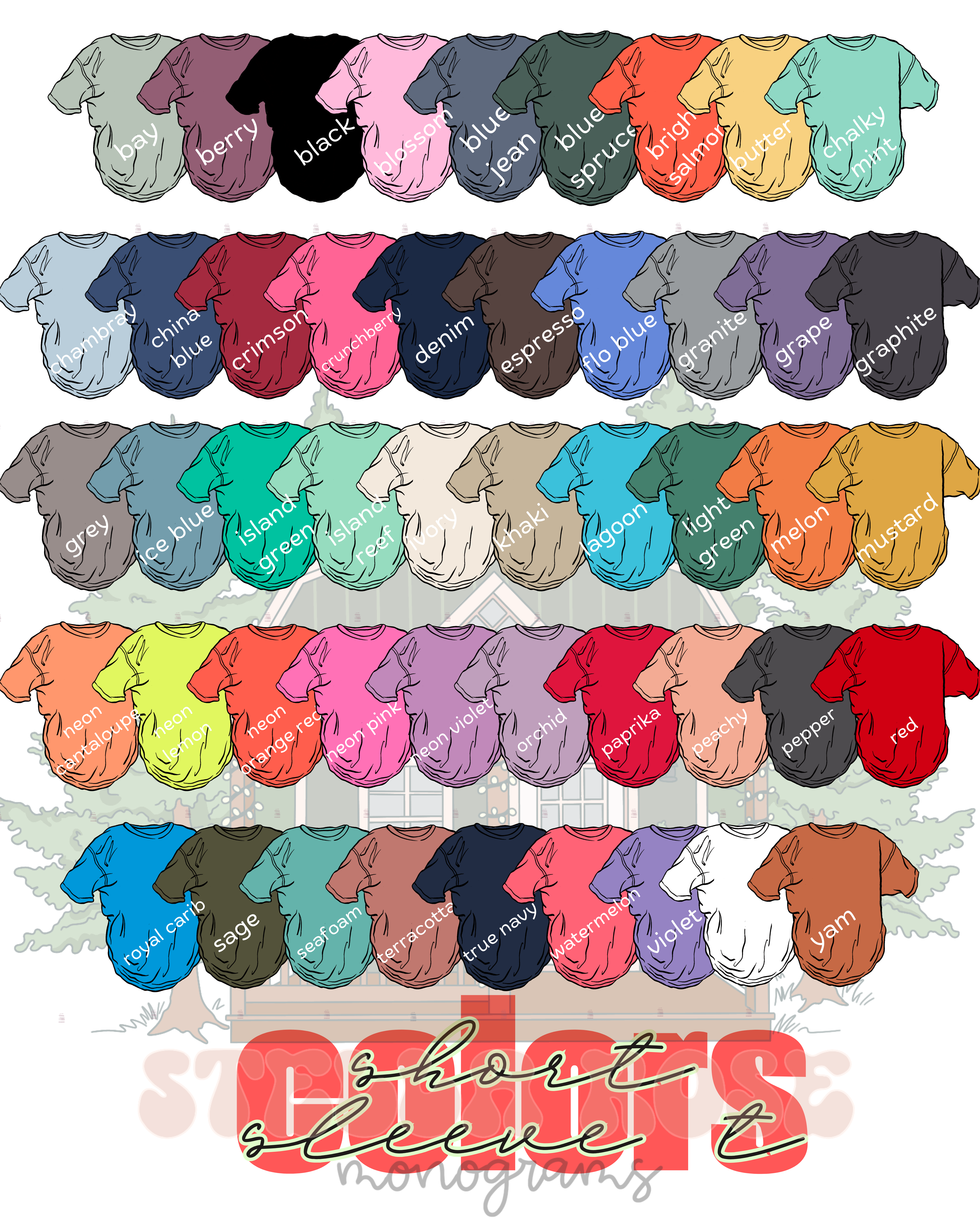 Choose from Comfort Colors Short Sleeve T's N' Sweatshirts or Traditional Sweatshirts. Or Comfort Color Lightweight Sweatshirts - they have the same top-notch quality at a lower cost. All of our tops are unisex and true to size (with a little bit of extra room for comfort).