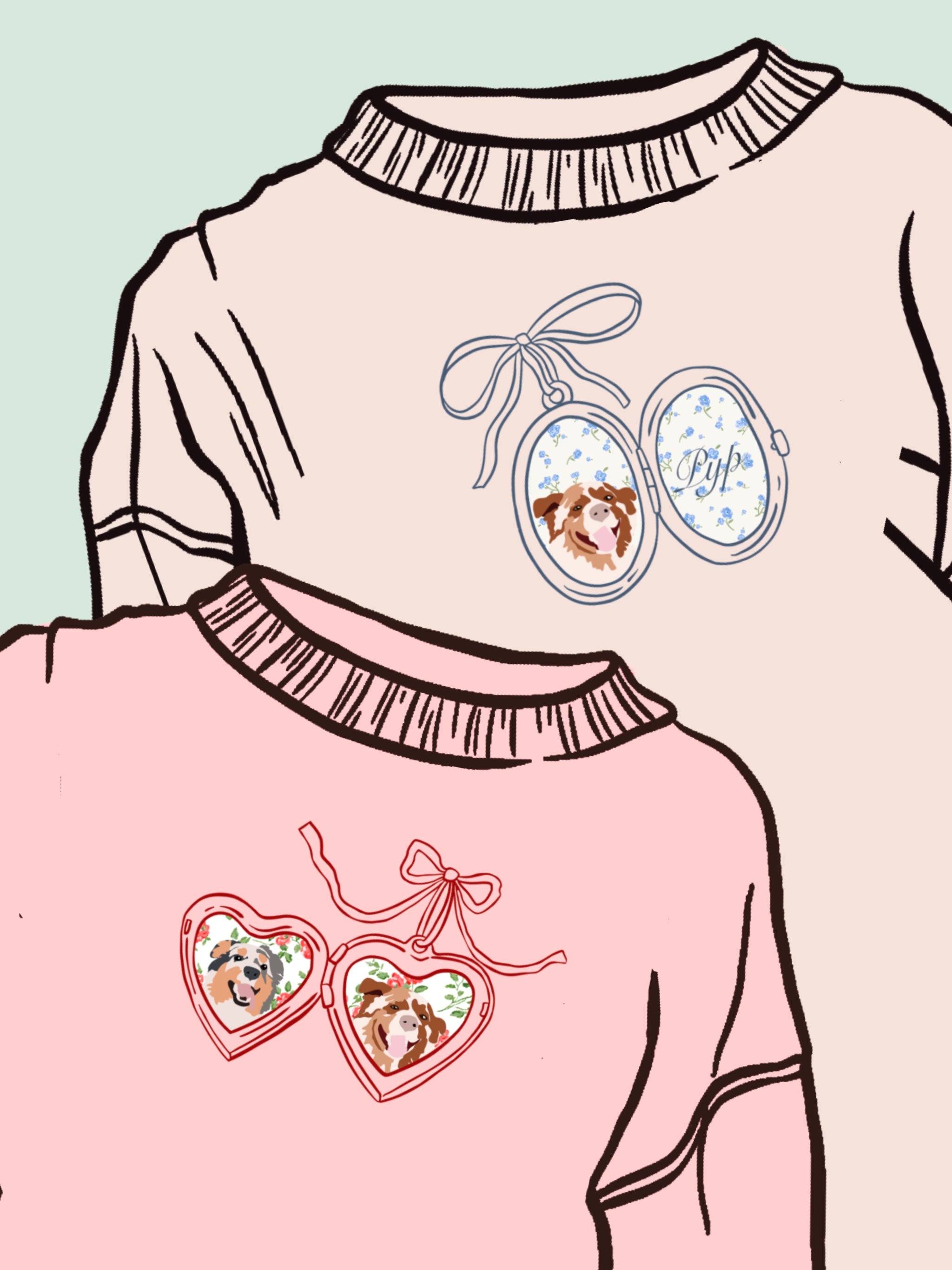 Pet Portrait Locket Appliqué Embroidered T's N' Pullovers 🐶Custom📿