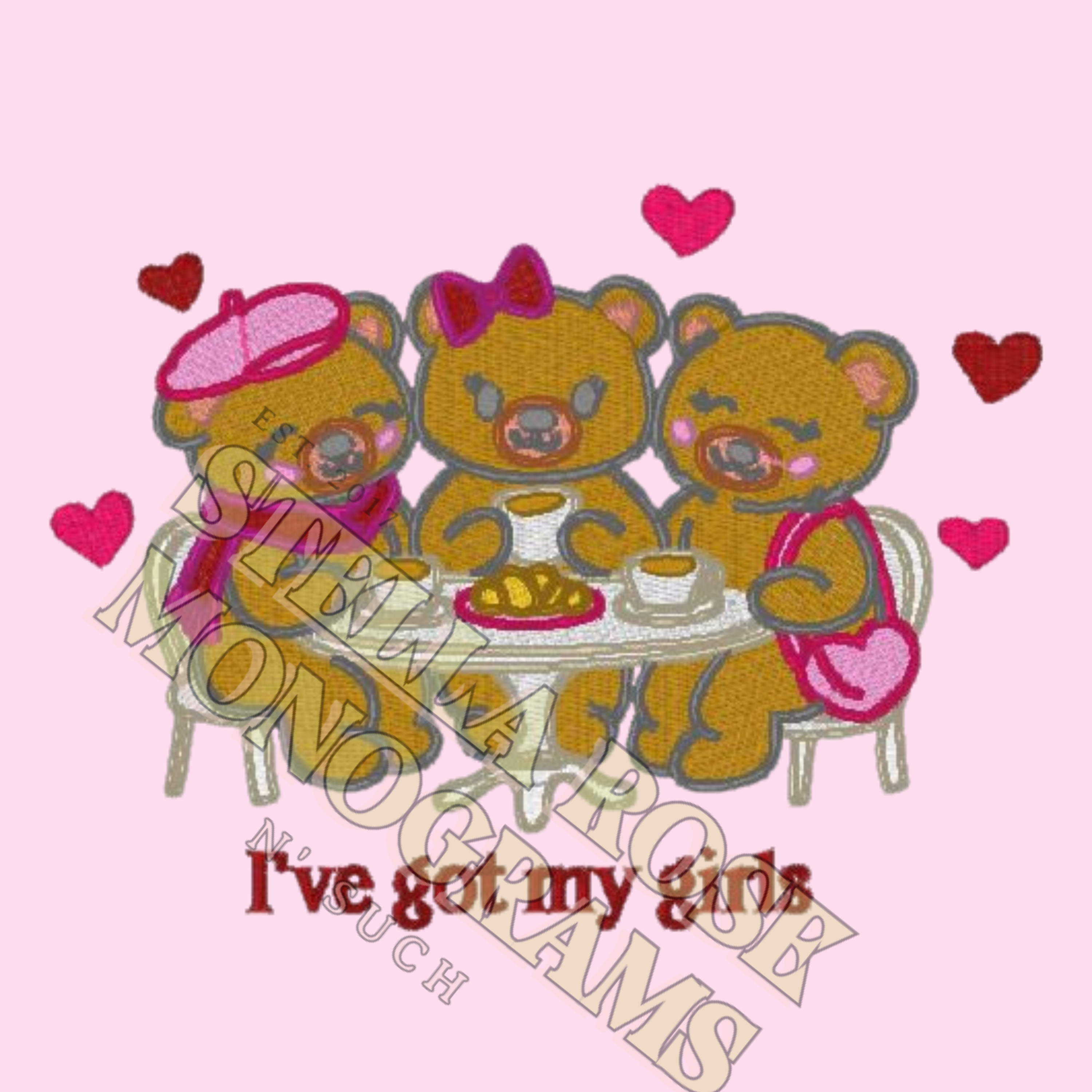 I've Got My Girls Embroidery Digital Design 1 size: 5.01 inches wide and 3.76 inches tall.