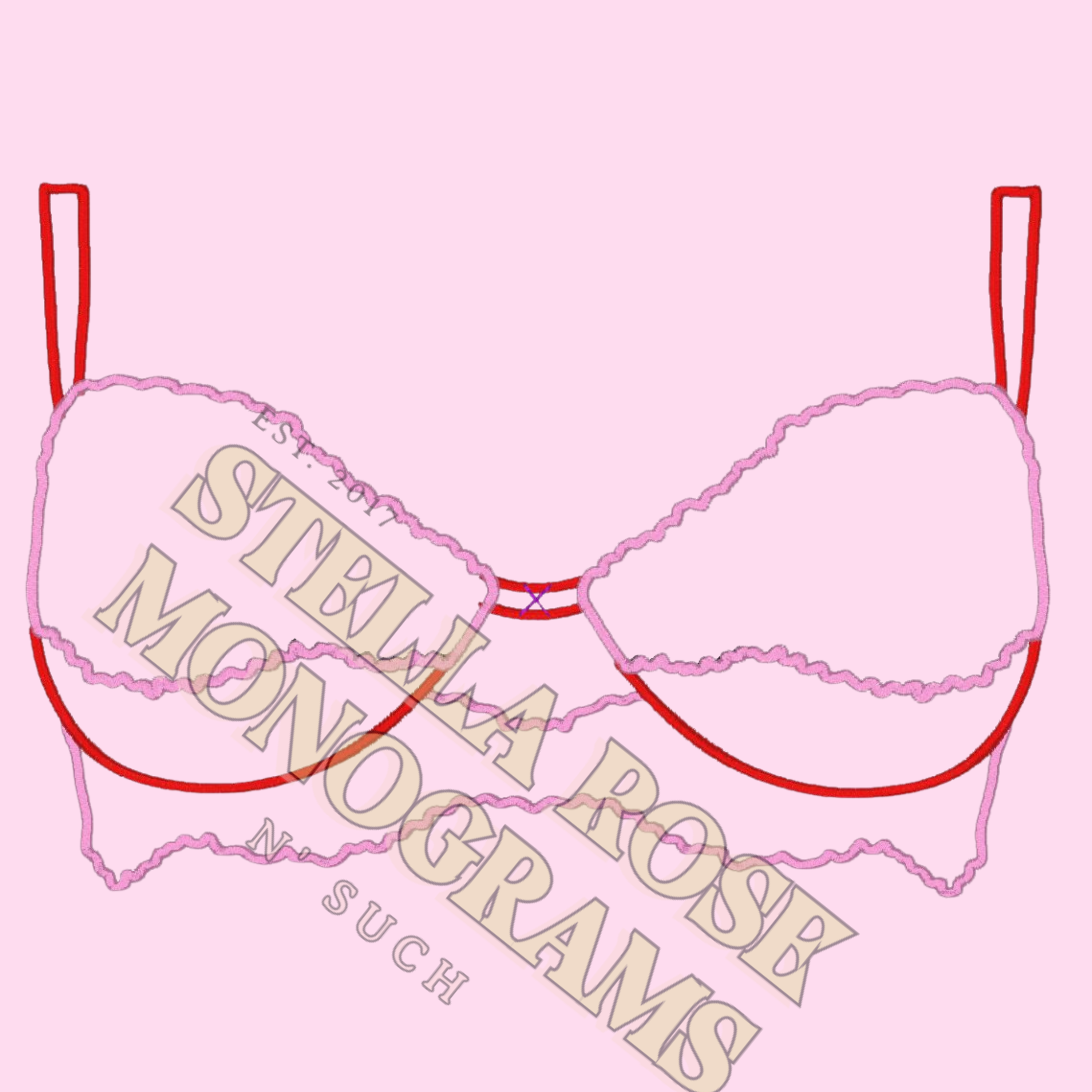 Lingerie Top Applique Embroidery Digital Design 1 size: 11.13 inches wide and 7.78 inches tall.