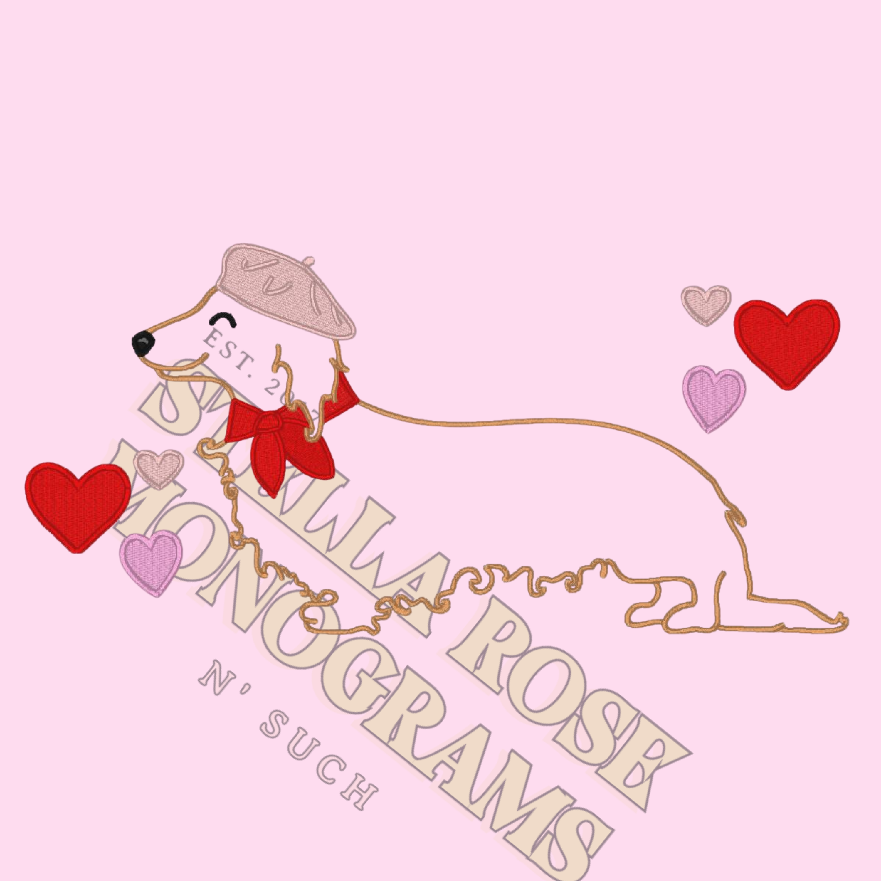 Oui Oui-ner Dog Applique Embroidery Design Digital Download
