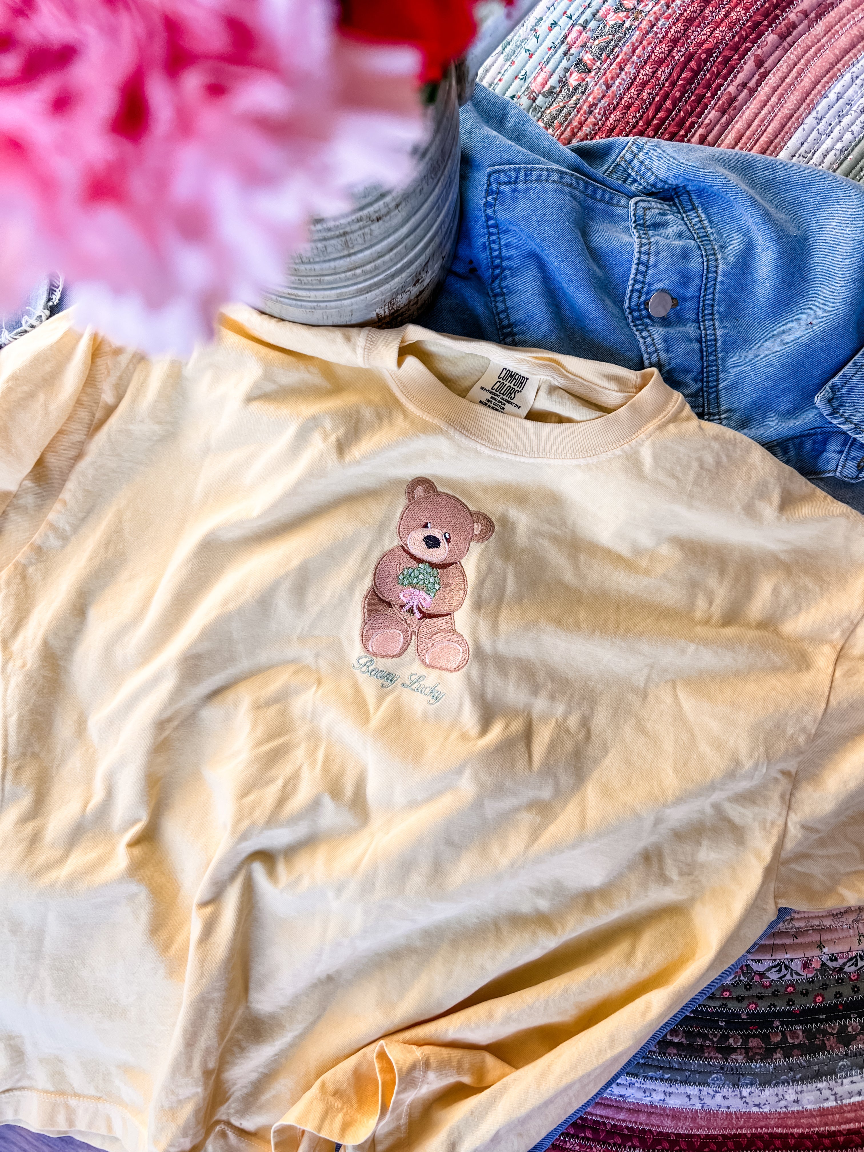 Beary Lucky Embroidered T's N' Pullovers 🧸Custom🍀